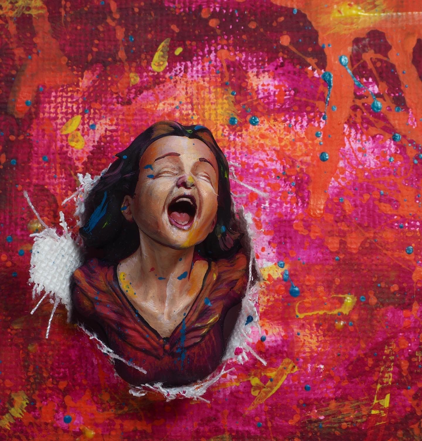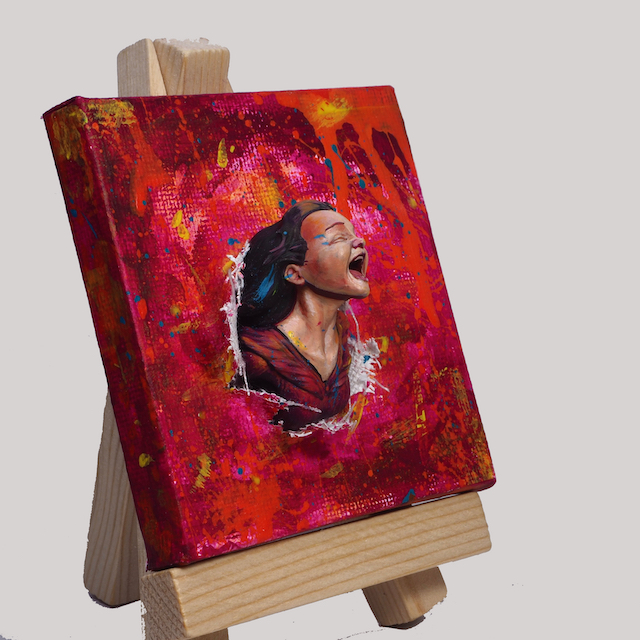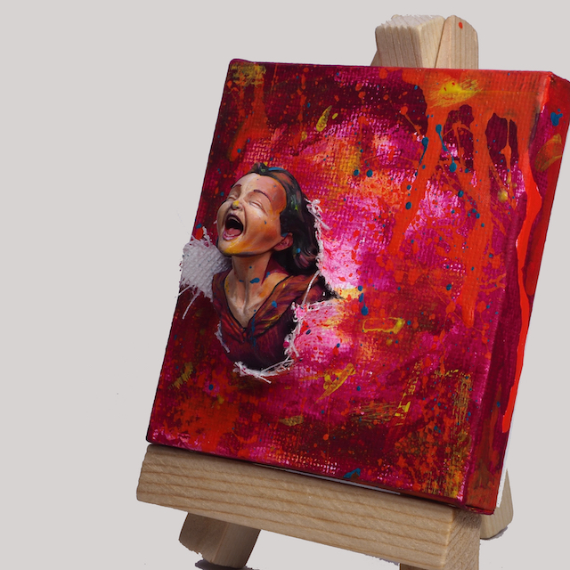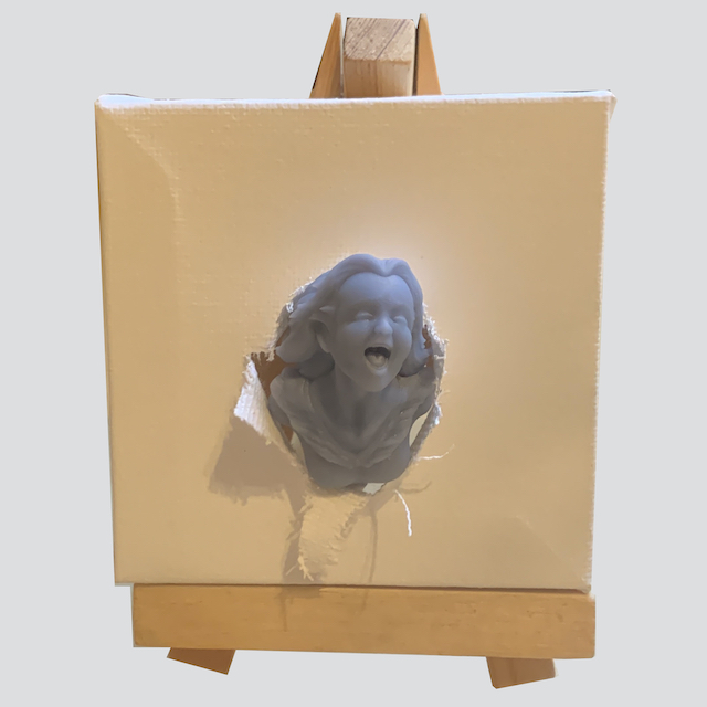 Then I painted the broken canvas, but it was a disaster, so I started again with a new one and then broke it. Finally I added some random splashed of paint to the figure and done.