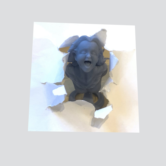 I was going through a very self-demanding with my painting and I needed a break from complex figures and big projects. So I got a printed copy of this bust and decided to let go experimenting with the background.