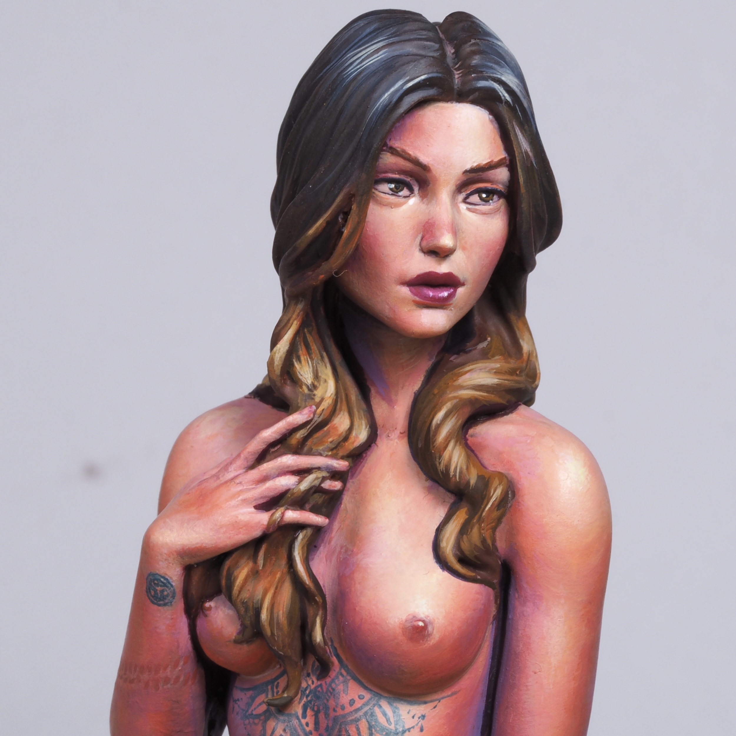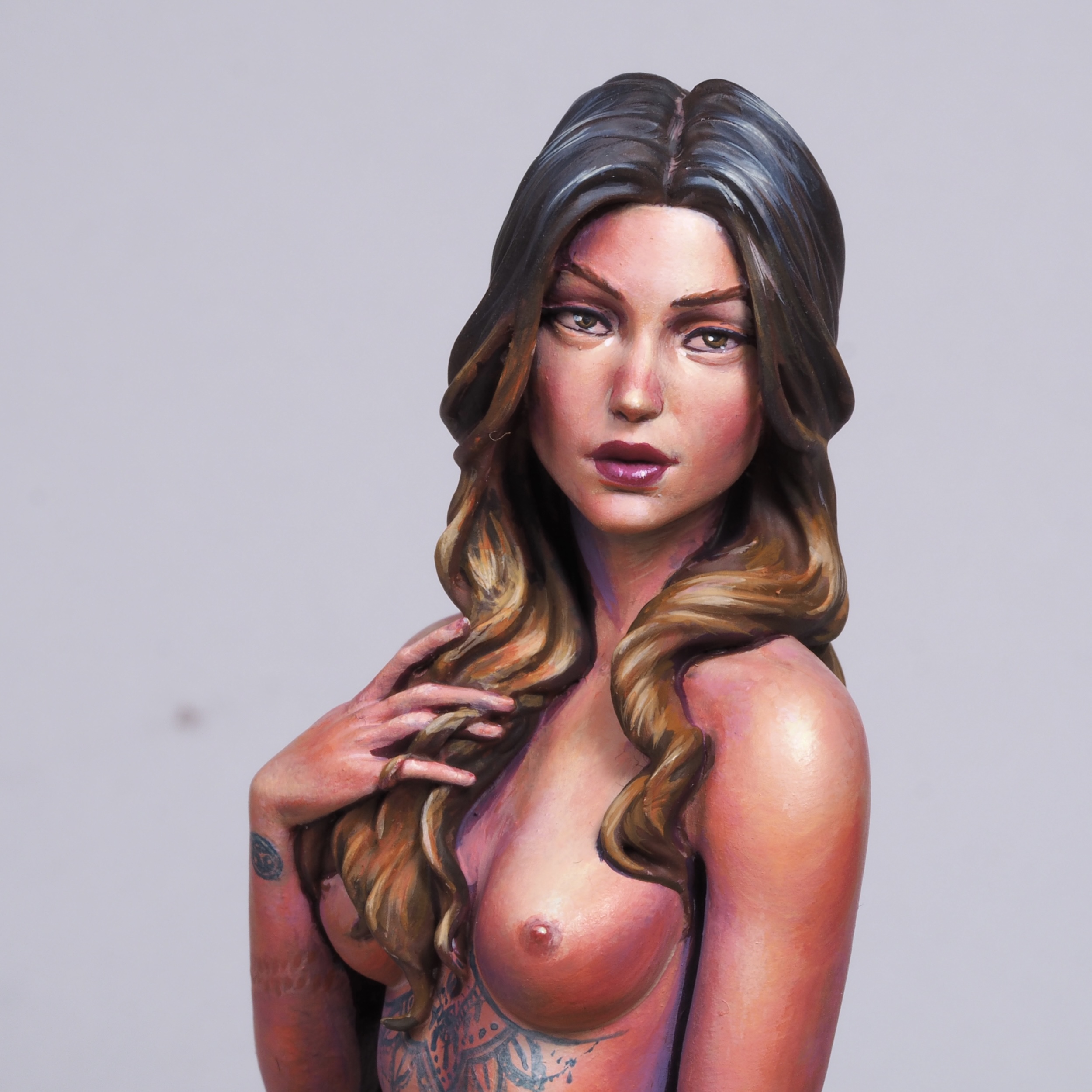 I wanted a really clean look for this figure as also in the painting world a rendered image is consider as a “good standard”. I started by Blocking clearly the colors and then blending them to extenuation.